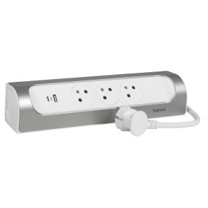 Rallonge d'angle 3x2P+T Surface et USB A+C avec cordon 1m - blanc/alu