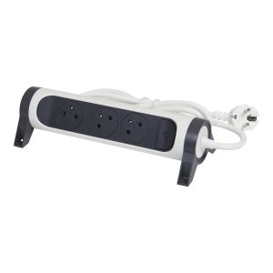 Rallonge 3x2P+T Surface avec interrupteur et cordon 1,5m 3G 1mm² - blanc/gris